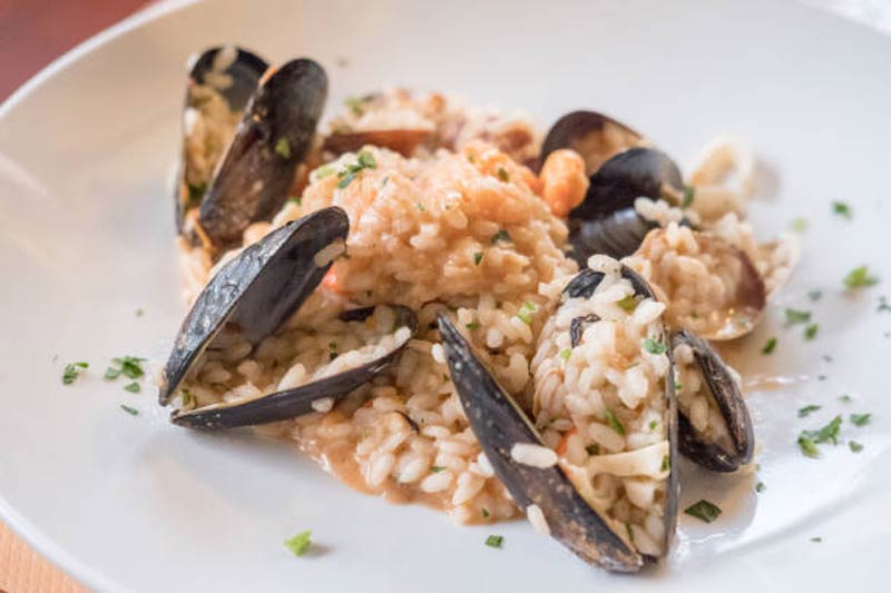 Risotto, Amêijoa Boa, Mexilhão, Camarão, Lulas, Molho de Tomate