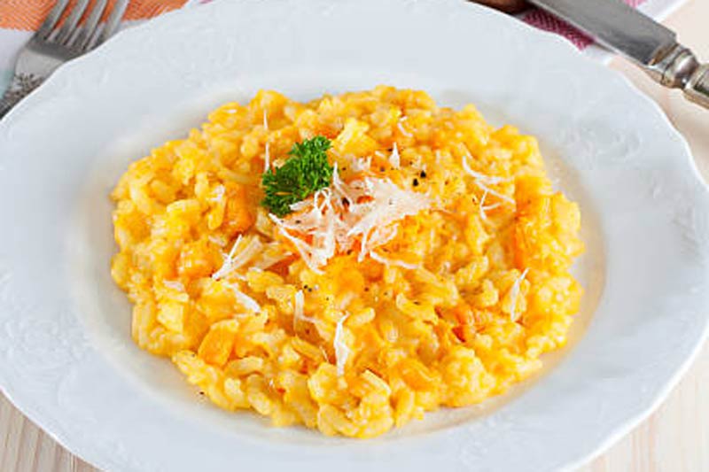 Risotto de Abóbora com Salsicha Fresca e Parmesão